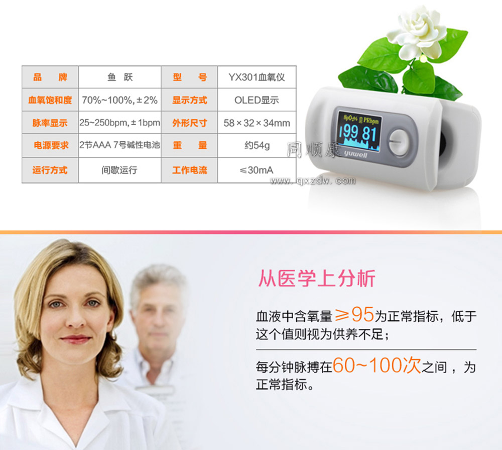 鱼跃 指来式脉搏血氧仪(指来式 YX301)