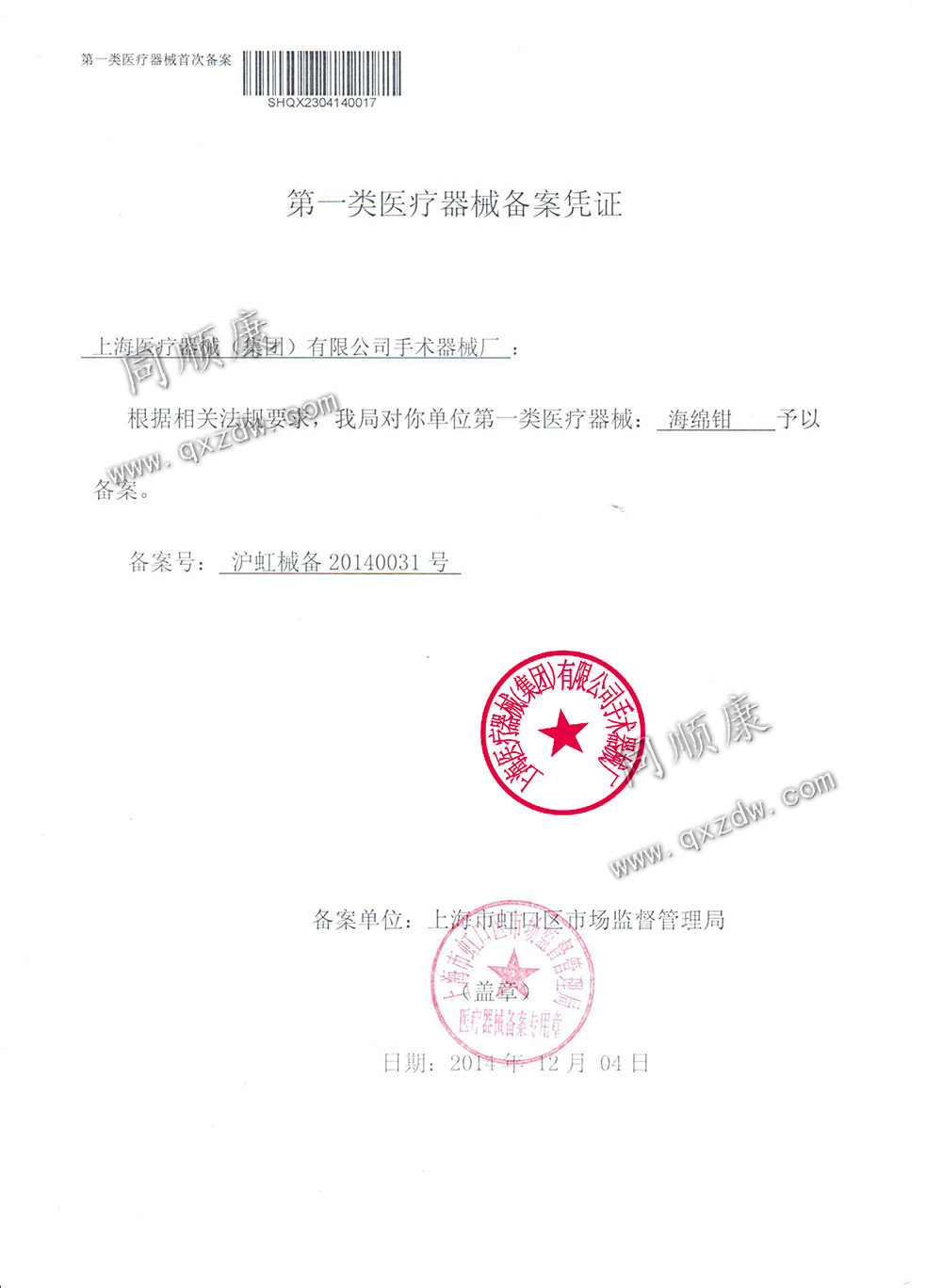 注册编号:泸虹械备20140031号
