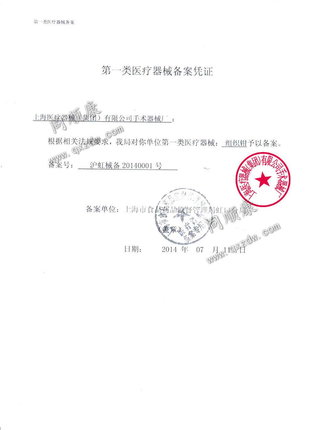 厂家:上海医疗器械(集团)有限公司手术器械厂
